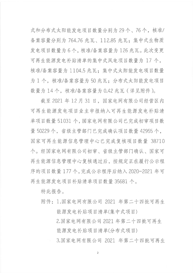 關(guān)于公布2021年第二十四批可再生能源發(fā)電補(bǔ)貼項(xiàng)目清單的公告