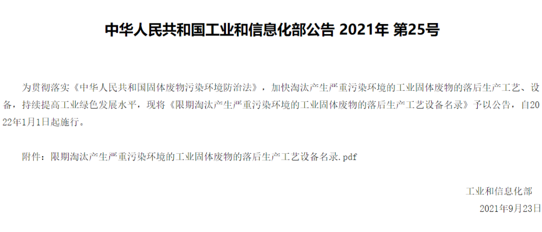 限期淘汰產(chǎn)生嚴(yán)重污染環(huán)境的工業(yè)固體廢物的落后生產(chǎn)工藝設(shè)備名錄