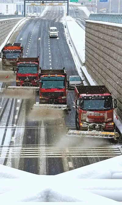 吉林省長春市二道區(qū)城市管理局環(huán)衛(wèi)運輸中心職工駕駛清雪車對機(jī)場快速路沿線進(jìn)行清雪作業(yè)。新華社記者 許 暢攝上海環(huán)衛(wèi)工人在清除積水。楊建正攝(影像中國)
