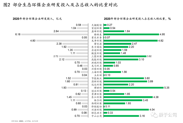 造成以上問(wèn)題的原因很多,主要有兩個(gè):一是國(guó)內(nèi)生態(tài)環(huán)保行業(yè)之前一直處于簡(jiǎn)單、粗暴的“跑馬圈地”時(shí)代,強(qiáng)政府關(guān)系和低成本融資成為這一階段企業(yè)制勝的“不二法寶”,這種“浮躁”的大環(huán)境導(dǎo)致很多企業(yè)“重投建、輕技運(yùn)”;二是創(chuàng)新型和革新型技術(shù)投入周期長(zhǎng),回報(bào)不明顯,很多企業(yè)尤其是三年任期制下的國(guó)企高層們?nèi)狈ψ銐蚰托?,容錯(cuò)機(jī)制缺失也讓他們對(duì)高風(fēng)險(xiǎn)的研發(fā)投入持謹(jǐn)慎態(tài)度,這從生態(tài)環(huán)保領(lǐng)域的上市企業(yè)的研發(fā)投入占收入的比重可見(jiàn)一斑(見(jiàn)圖2)。