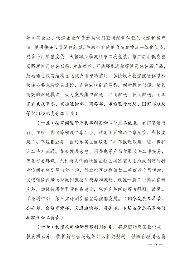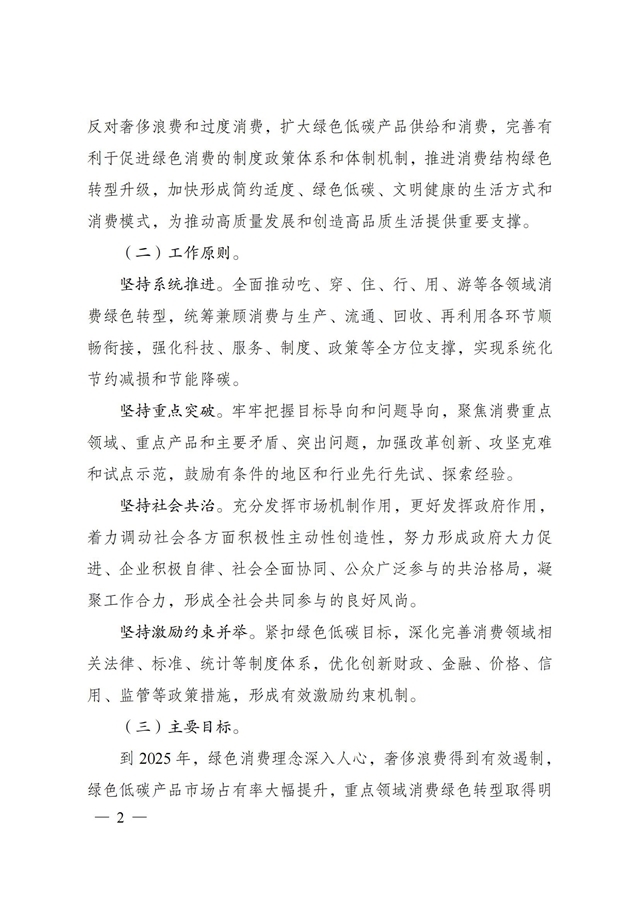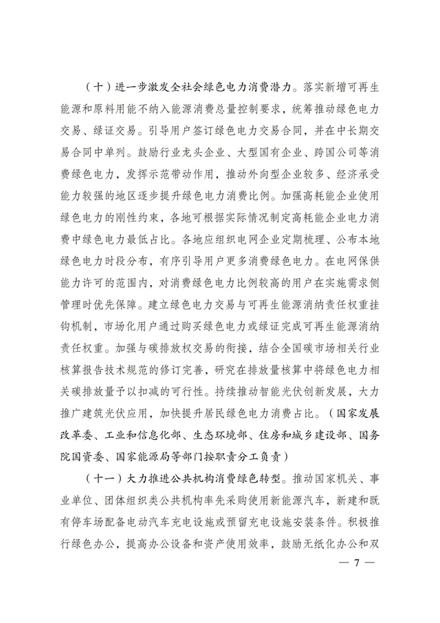 為深入貫徹落實《中共中央、國務(wù)院關(guān)于完整準確全面貫徹新發(fā)展理念做好碳達峰碳中和工作的意見》和《2030年前碳達峰行動方案》有關(guān)要求,根據(jù)碳達峰碳中和工作領(lǐng)導(dǎo)小組部署安排,國家發(fā)展改革委、工業(yè)和信息化部、住房和城鄉(xiāng)建設(shè)部、商務(wù)部、市場監(jiān)管總局、國管局、中直管理局會同有關(guān)部門研究制定了《促進綠色消費實施方案》?,F(xiàn)印發(fā)給你們,請結(jié)合實際,認真抓好貫徹落實。