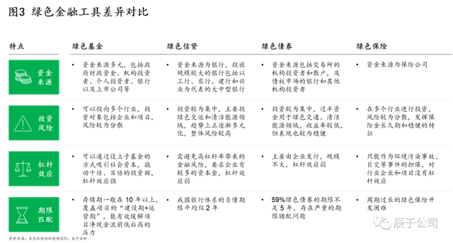 不同的綠色金融工具在資金來源、投資風險、杠桿效應、期限匹配等方面都有所差異(見圖3),在實際項目運用中,可根據(jù)項目實際情況靈活運用,最大限度的降低資金成本。