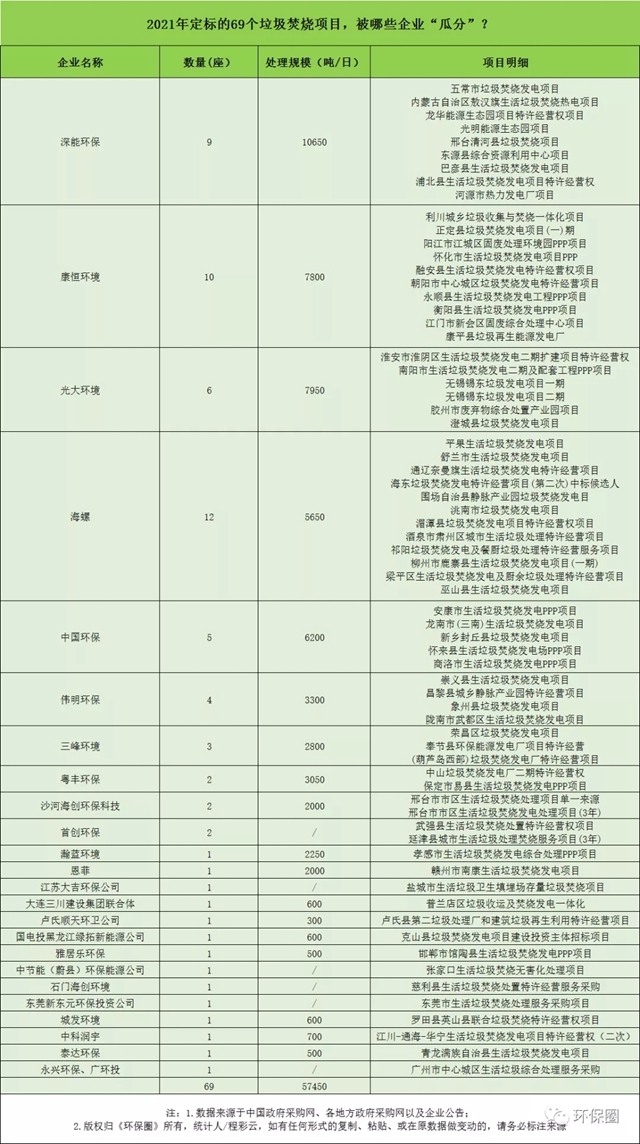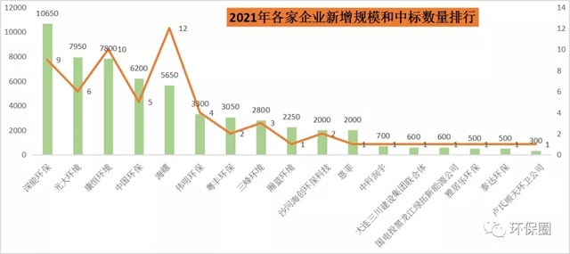 最后,我們從中標(biāo)企業(yè)的角度,進(jìn)一步觀察2021年定標(biāo)的垃圾焚燒項(xiàng)目,被哪些企業(yè)“瓜分”了,這也是每年讀者最感興趣的話題。