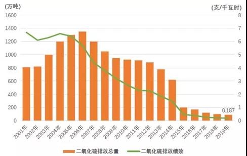 圖3 2001─2019年電力二氧化硫排放情況