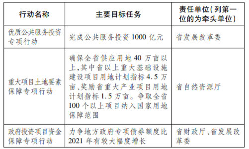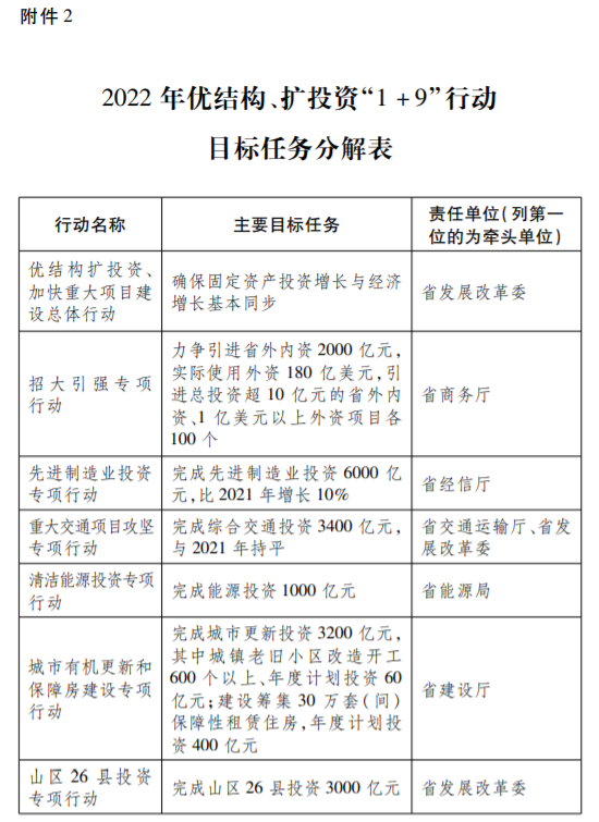 1.擴大有效投資。確保2022年全省固定資產(chǎn)投資增長與經(jīng)濟增長基本同步。