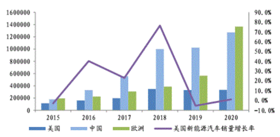 圖2.2015年-2020年月美國(guó)新能源汽車銷量(按企業(yè)劃分)
