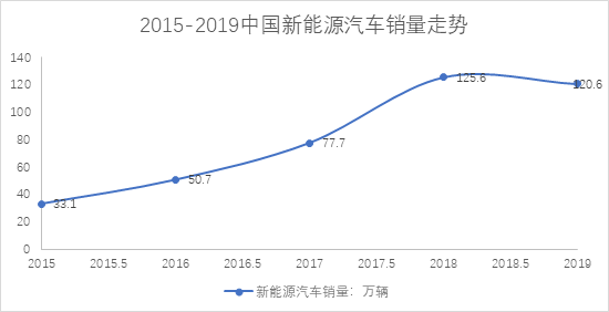 圖3.2015-2019年中國(guó)新能源汽車銷量走勢(shì)