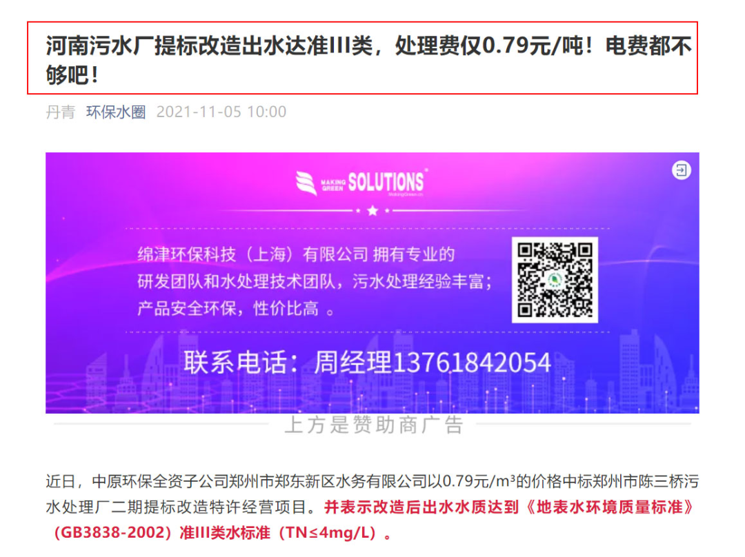 2、處理費0.79元/噸,出水達準III類!合理嗎?環(huán)保圈,2021-10-12