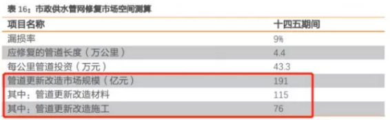 有機構(gòu)預(yù)測稱,“十四五”期間供水管網(wǎng)更新改造帶來的市場空間有望達(dá)191億元。
