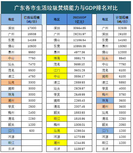 生活垃圾焚燒屬于公共服務(wù),需要政府買單。總的來看,18個市的生活焚燒規(guī)模基本與各市的經(jīng)濟排名相對應(yīng)。也有一些城市如潮州、梅州、揭陽、汕尾等,當前投運的或者規(guī)劃建設(shè)的焚燒能力遠超其經(jīng)濟排位,而一些城市如江門、珠海等,規(guī)劃的焚燒能力則遠低于其省內(nèi)的經(jīng)濟排位,其中的風險和機會或許值得特別關(guān)注。