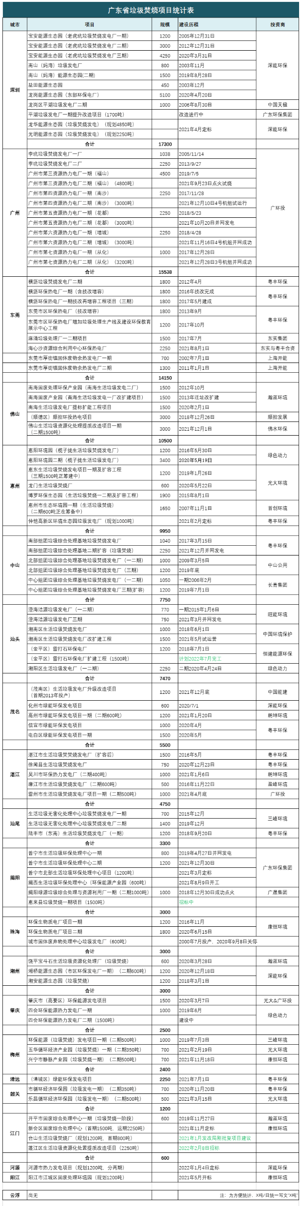 【附】廣東省垃圾焚燒項目統(tǒng)計表