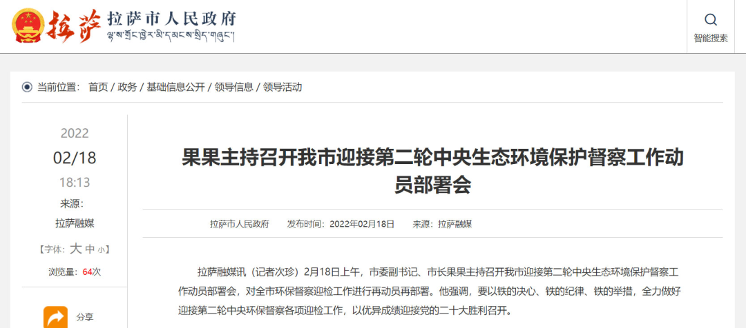 5、果果主持召開我市迎接第二輪中央生態(tài)環(huán)境保護(hù)督察工作動(dòng)員部署會(huì),拉薩融媒,2022-02-18