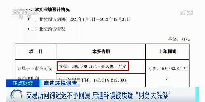 事實上,這已經(jīng)不是啟迪環(huán)境第一次收到問詢函了,2021年7月,啟迪環(huán)境突擊計提22億元資產(chǎn)減值損失,但相關項目的真實性遭到質疑,交易所要求公司說明是否存在“業(yè)績大洗澡”的情形,但一直沒有等到公司的正面回應。 上海市某律師事務所合伙人 徐榮:多次詢問之后,超過5個月以上,這么長的時間還不予回復,它實際上不具有合理性了。那么,就可以去推測它是否存在故意隱瞞,或者去做其它虛假陳述的安排。