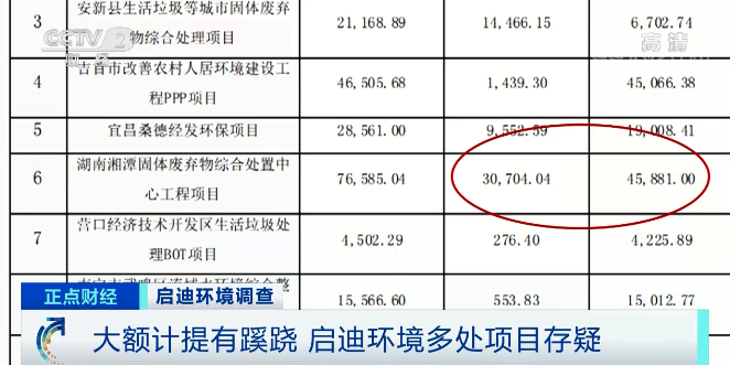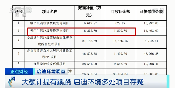 多位知情人士均表示,前幾年聽說過這里要建垃圾焚燒站,只是一開始有人來看過地址,平整場地,但由于附近居民反對,相關工程根本沒有開始建,更不存在賬面金額達到上億元的可能。湖北省天門市白茅湖農場附近村民:那是垃圾發(fā)電廠,就是前幾年的事,劃了位置,最后沒搞起來。湖北省天門市白茅湖農場附近村民:是我們親自弄的,不讓他們拖東西進來。沒有建造,只是當時搞過提議。估計這邊賠了一百多萬元,那邊賠了兩百多萬元。加起來四百多萬元,不到五百萬元。 除了天門項目之外,啟迪環(huán)境還同時對另外11個項目都進行了計提,記者注意到,這些項目中賬面凈值規(guī)模最大,計提減值金額最高的項目位于湖南湘潭,目前已經(jīng)計提了4.5億元的資產(chǎn)減值損失,可回收金額依然超過3億元。