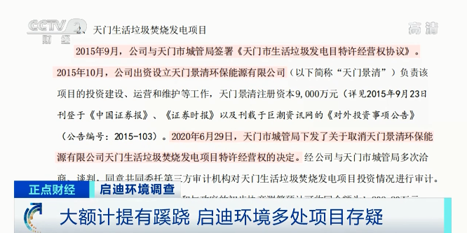 △央視財經(jīng)《正點財經(jīng)》欄目視頻 啟迪環(huán)境對交易所的問詢遲遲不予回復,總部大樓建設也未如期開展,公司此前備受質疑的大額計提又是怎么回事?不少在建工程項目的賬面金額動輒數(shù)億元,這些項目當前進度如何?