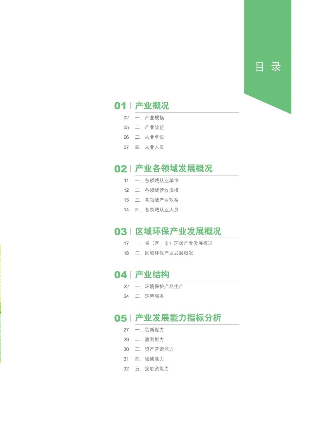四、產(chǎn)業(yè)結(jié)構(gòu)2020年,列入全國(guó)環(huán)保產(chǎn)業(yè)重點(diǎn)企業(yè)基本情況調(diào) 查和全國(guó)環(huán)境服務(wù)業(yè)財(cái)務(wù)統(tǒng)計(jì)的15193家企業(yè)中,有 2088家企業(yè)從事環(huán)境保護(hù)產(chǎn)品生產(chǎn)活動(dòng),有13799家企 業(yè)從事環(huán)境服務(wù)活動(dòng)。其中,有1394家環(huán)境保護(hù)產(chǎn)品 生產(chǎn)專營(yíng)企業(yè),占比9.2%;13105家環(huán)境服務(wù)專營(yíng)企 業(yè),占比86.3%;694家環(huán)境保護(hù)產(chǎn)品生產(chǎn)及環(huán)境服務(wù) 兼營(yíng)企業(yè),占比4.5%。 1394家環(huán)境保護(hù)產(chǎn)品生產(chǎn)專營(yíng)企業(yè)實(shí)現(xiàn)營(yíng)業(yè)收入 701.7億元,環(huán)保業(yè)務(wù)營(yíng)業(yè)收入504.5億元,營(yíng)業(yè)利潤(rùn) 59.1億元,利潤(rùn)率8.4%,吸納就業(yè)人員75529人。與 2019年相比,2020年環(huán)境保護(hù)產(chǎn)品生產(chǎn)專營(yíng)相同樣本 企業(yè)的營(yíng)業(yè)收入增長(zhǎng)了1.5%,環(huán)保業(yè)務(wù)營(yíng)業(yè)收入增長(zhǎng) 了8.6%,營(yíng)業(yè)利潤(rùn)下降了2.7%,從業(yè)人員數(shù)量增加了 0.4%,利潤(rùn)率由8.7%降至8.3%。13105家環(huán)境服務(wù)專營(yíng)企業(yè)實(shí)現(xiàn)營(yíng)業(yè)收入6974.9億 元,環(huán)保業(yè)務(wù)營(yíng)業(yè)收入5203.8億元,營(yíng)業(yè)利潤(rùn)545.4億 元,利潤(rùn)率7.8%,吸納就業(yè)人員744420人。與2019年 相比,2020年環(huán)境服務(wù)專營(yíng)相同樣本企業(yè)的營(yíng)業(yè)收入 增長(zhǎng)了10.0%,環(huán)保業(yè)務(wù)營(yíng)業(yè)收入增長(zhǎng)了7.5%,營(yíng)業(yè) 利潤(rùn)增長(zhǎng)了1.7%,從業(yè)人員數(shù)量增加了5.2%,利潤(rùn)率 由8.5%降至7.9%。 694家環(huán)境保護(hù)產(chǎn)品生產(chǎn)及環(huán)境服務(wù)兼營(yíng)企業(yè)實(shí) 現(xiàn)營(yíng)業(yè)收入977.0億元,環(huán)保業(yè)務(wù)營(yíng)業(yè)收入525.2億元, 營(yíng)業(yè)利潤(rùn)71.3億元,利潤(rùn)率7.3%,吸納就業(yè)人員52782 人。與2019年相比,2020年環(huán)境保護(hù)產(chǎn)品生產(chǎn)及環(huán)境 服務(wù)兼營(yíng)相同樣本企業(yè)的營(yíng)業(yè)收入增長(zhǎng)48.9%,環(huán)保 業(yè)務(wù)營(yíng)業(yè)收入增長(zhǎng)了19.2%,營(yíng)業(yè)利潤(rùn)增長(zhǎng)了22.6%, 從業(yè)人員增加了8.1%,利潤(rùn)率由8.4%降至6.9%。五、產(chǎn)業(yè)發(fā)展能力指標(biāo)分析從創(chuàng)新能力看,與2019年相比,2020年相同樣 本企業(yè)研發(fā)經(jīng)費(fèi)支出占比同比保持穩(wěn)定,企業(yè)平均研 發(fā)經(jīng)費(fèi)同比增長(zhǎng),環(huán)境監(jiān)測(cè)領(lǐng)域增幅較大,企業(yè)平均 專利授權(quán)數(shù)量同比小幅增長(zhǎng),企業(yè)參與制修訂的標(biāo)準(zhǔn) 平均數(shù)量同比持平。相同樣本企業(yè)研發(fā)人員數(shù)同比微增,研發(fā)人員占從業(yè)人員比重小幅下降。但與作為戰(zhàn) 略性新興產(chǎn)業(yè)和享受高新技術(shù)企業(yè)待遇的行業(yè)應(yīng)擔(dān)負(fù) 的科技創(chuàng)新發(fā)展責(zé)任相比,環(huán)保企業(yè)還應(yīng)進(jìn)一步加大 研發(fā)投入力度。 從盈利能力看,2020年環(huán)保企業(yè)凈資產(chǎn)收益率相 對(duì)較低。與2019年相比,相同樣本企業(yè)凈資產(chǎn)收益率 同比下降,利潤(rùn)率同比基本保持穩(wěn)定。反映2020年我 國(guó)環(huán)保企業(yè)資產(chǎn)收益能力有所下降。從資產(chǎn)營(yíng)運(yùn)能力看,2020年環(huán)保企業(yè)總資產(chǎn)周轉(zhuǎn) 率較低,應(yīng)收賬款周轉(zhuǎn)率相對(duì)較差,與2019年相比, 2020年相同樣本企業(yè)總資產(chǎn)周轉(zhuǎn)率、應(yīng)收賬款周轉(zhuǎn)率 均保持穩(wěn)定。反映環(huán)保企業(yè)的資產(chǎn)營(yíng)運(yùn)能力保持穩(wěn)定,但回款問題仍較突出。 從償債能力看,2020年環(huán)保企業(yè)資產(chǎn)負(fù)債水平總 體處于中等水平。與2019年相比,2020年相同樣本企 業(yè)資產(chǎn)負(fù)債率平均值同比下降1個(gè)百分點(diǎn),為58.7%, 總體處于合理區(qū)間。 從投融資能力看,2020年,水污染防治、固廢處理處置與資源化領(lǐng)域依然為年度環(huán)保產(chǎn)業(yè)投資熱點(diǎn)領(lǐng) 域。與2019年相比,2020年相同樣本企業(yè)投資額同比增長(zhǎng)明顯。固體廢物處理處置與資源化、土壤修復(fù)領(lǐng)域企業(yè)投資額同比增幅較大。環(huán)保產(chǎn)業(yè)融資依然以銀 行及信用社貸款為代表的間接融資方式為主,企業(yè)融 資額同比大幅增長(zhǎng)。 總體來看,2020年,我國(guó)環(huán)保產(chǎn)業(yè)創(chuàng)新能力有所增強(qiáng),盈利水平略有下滑,資產(chǎn)營(yíng)運(yùn)能力保持穩(wěn)定, 資產(chǎn)負(fù)債水平處于合理區(qū)間,但回款問題仍較突出, 成本壓力呈加大趨勢(shì)。 點(diǎn)擊文末“閱讀原文”查看完整版報(bào)告