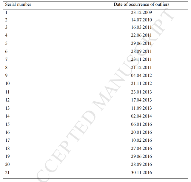 EUA市場回報率序列中的離群值如圖3所列,觀察對應(yīng)時期特點得到,離群值可能受戰(zhàn)爭、自然災(zāi)害、政治沖突、經(jīng)濟崩潰等事件影響造成。