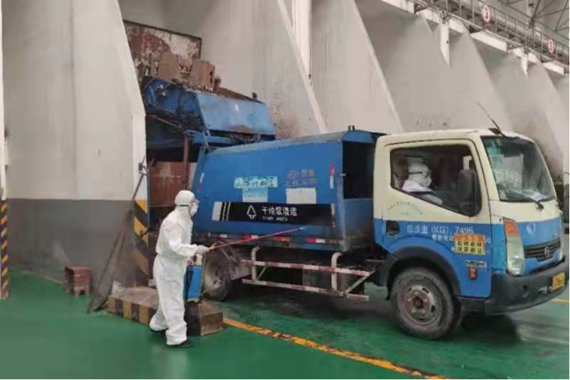日前,焚燒廠的清運(yùn)作業(yè)人員全面按疫情防控要求,在每次清運(yùn)作業(yè)過程中對(duì)生活垃圾收集容器、收集點(diǎn)、作業(yè)場(chǎng)所周邊2-3米范圍內(nèi)以及裝載作業(yè)車輛采取消毒措施。