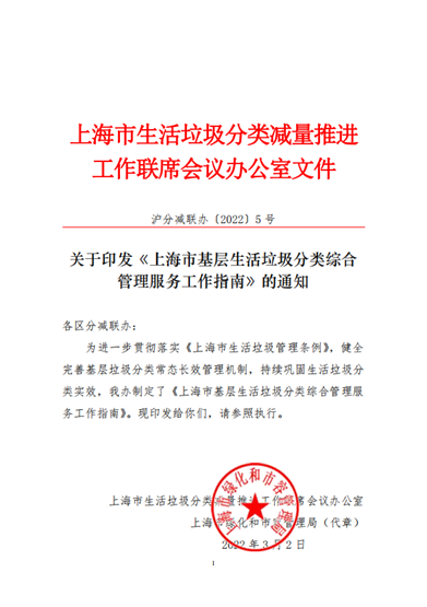 近日,上海市生活垃圾分類減量推進(jìn)工作聯(lián)席會(huì)議辦公室聯(lián)合上海市綠化和市容管理局發(fā)布《上海市基層生活垃圾分類綜合管理服務(wù)工作指南》。