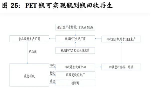 再生油:碳約束推動(dòng)需求高增,再生地溝油產(chǎn)業(yè)升級將至碳約束推動(dòng)需求高增,再生地溝油產(chǎn)業(yè)升級將至。1)碳約束刺激再生油需求,歐洲生物柴油量價(jià)將長期處于高位。2)國際政策推動(dòng)國內(nèi)地溝油利用“高端化”:車用油方面,“烴基化”趨勢明顯;航油方面,國際航協(xié)2050碳中和目標(biāo)推動(dòng)生物質(zhì)烴基航煤需求釋放。地溝油制烴基柴油附加值將較UCOME顯著提升,再生地溝油向著高端產(chǎn)品升級的產(chǎn)業(yè)趨勢明顯。1. 碳約束刺激需求,歐洲生物柴油量價(jià)將長期處于高位歐洲生物柴油需求旺盛,量價(jià)將長期處于高位。1)歐盟是全球生物柴油最大的消費(fèi)市場,目前歐盟生物柴油消費(fèi)量占全球總消費(fèi)量的 40%。2)發(fā)達(dá)國家強(qiáng)制按比例添加:伴隨《歐盟可再生能源指令》于2021年開始實(shí)施,歐洲公路運(yùn)輸行業(yè)的生物柴油摻混比例將從 10%提升至25%,需 求將在未來10年保持增長態(tài)勢。按照目前全球生物柴油產(chǎn)能計(jì)算,到2030年歐洲地區(qū)將至少出現(xiàn)1000萬噸/年的供給缺口;如果考慮美國拜登政府改變碳減排政策帶來的需求增加以及歐洲地區(qū)淘汰ILUC高風(fēng)險(xiǎn)燃料的影響,總體供給缺口將達(dá)1500萬噸/年。3)廢油脂基生物柴油(UCOME)隱含碳排放權(quán)更高,節(jié)碳效果最為突出,競爭優(yōu)勢明顯,長期處于供不應(yīng)求狀態(tài)。2. 國際政策推動(dòng)國內(nèi)地溝油利用“高端化”,產(chǎn)業(yè)升級將至目前我國地溝油資源化終端產(chǎn)物主要以脂肪酸甲酯為主,隨著國際政策驅(qū)動(dòng)以及地溝油脫氧加氫制先進(jìn)燃料生物烴基柴油/航煤技術(shù)進(jìn)入成熟階段,我國地溝油資源化終端產(chǎn)品將由脂肪酸甲酯產(chǎn)品向生物質(zhì)烴基柴 油/航煤升級,產(chǎn)品附加值將逐步提升,產(chǎn)業(yè)升級良機(jī)將至。地溝油經(jīng)加工再利用而制備的生物質(zhì)燃料,包括生物柴油、可再生柴油以及生物質(zhì)航煤:1)生物柴油是廢油脂或動(dòng)植物油脂經(jīng)酯交換或酯化制成的脂肪酸甲酯(FAME),需要與常規(guī)化石柴油摻混使用, 目前我國地溝油資源化終端產(chǎn)物主要以脂肪酸甲酯為主(UCOME);2)可再生柴油是廢油脂或動(dòng)植物油脂通過加氫和異構(gòu)化得到的烴基柴油(HVO/HEFA),為國際認(rèn)可的先進(jìn)生物燃料,可完全替代化 石柴油或與化石柴油制成調(diào)和燃料;3)生物質(zhì)航煤是由廢油脂經(jīng)加氫處理得到 HEFA 后,經(jīng)異構(gòu)化生成。國際政策推動(dòng)國內(nèi)地溝油利用“高端化”:1)車用油“烴基化”趨勢明顯。未來伴隨歐洲對于添加比例、排放標(biāo)準(zhǔn)等約束趨嚴(yán),車用油面臨“烴基化”趨勢,生物柴油將向著可再生柴油方向升級。2) 國際航協(xié) 2050碳中和目標(biāo)推動(dòng)生物質(zhì)烴基航煤需求釋放。國際航協(xié)設(shè)立2050年實(shí)現(xiàn)碳中和的強(qiáng)制性目標(biāo),生物質(zhì)航煤作為主要減 排手段需求量將攀升。①作為高排放行業(yè)之一,2019年航空業(yè)占全 球碳排放量的 2%。②國際航協(xié)(IATA)于 2021 年 10 月通過決議, 290 個(gè)成員航司在 2050 年實(shí)現(xiàn)碳中和,助力實(shí)現(xiàn)巴黎協(xié)定控制溫升 的目標(biāo)。計(jì)劃減排量相當(dāng)于 2050 年前累計(jì)減排 212 億噸二氧化碳 當(dāng)量。③現(xiàn)有技術(shù)中,生物質(zhì)航煤為主的環(huán)保航空燃料將為主要的 減排手段,環(huán)保燃料預(yù)計(jì)貢獻(xiàn) 65%碳減排量。IATA 初步目標(biāo)為, 2025 年環(huán)保航空燃料產(chǎn)量由 2019 年的 1.4 億升提升至 79 億升, IEA 測算全球生物質(zhì)航煤的產(chǎn)量在 2021 至 2026CAGR77%。以地溝油等廢油脂作為原材料的生物烴基航煤(HFEA)目前已技術(shù)成熟、成本相對較低、得油率較高。1)HFEA 作為目前唯一進(jìn)入 商業(yè)化應(yīng)用階段的生物質(zhì)航煤技術(shù),生產(chǎn)成本為 0.88 歐元/升,為各 技術(shù)中最低,且得油率為 0.9,遠(yuǎn)高于其他技術(shù)得油率(Pavlenko et al., 2019)。2)據(jù)IRENA,地溝油生產(chǎn)生物質(zhì)烴基航煤的成本低于 大豆油、棕櫚油,根據(jù)現(xiàn)有資料測算,地溝油航煤成本僅相當(dāng)與棕 櫚油航煤的 62%,具有較強(qiáng)的成本優(yōu)勢。再生地溝油產(chǎn)品附加值將逐步提升,產(chǎn)業(yè)升級良機(jī)將至。受到成本和隱含碳稅影響,目前海外的生物質(zhì)航煤價(jià)格遠(yuǎn)高于化石航煤,生 物質(zhì)航煤的需求基本都是受到政策驅(qū)動(dòng)。據(jù) Argus media 統(tǒng)計(jì),2020 年生物質(zhì)航煤價(jià)格為化石航煤的 3-6 倍。地溝油制生物質(zhì)航煤產(chǎn)品 附加值將較 UCOME 顯著提升,再生地溝油向著高端產(chǎn)品升級的產(chǎn) 業(yè)趨勢明顯。再生塑料:政策推動(dòng)需求釋放,PET 瓶對瓶高端回收應(yīng)用替換速度超預(yù)期 回收再生利用為廢塑料的最佳處置方式。再生塑料節(jié)能減碳,為實(shí)現(xiàn)碳 中和的重要手段之一。政策驅(qū)動(dòng)全球再生塑料需求釋放,PET瓶對瓶高 端回收應(yīng)用替換速度超預(yù)期。塑料垃圾泄露到環(huán)境中難以降解帶來危害,其污染治理是世界性難題,對我國來說也亟待解決。1)塑料垃圾產(chǎn)生量快速增加。根據(jù)
