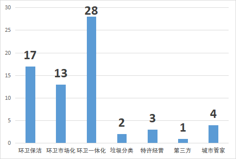 從中標(biāo)情況來(lái)看,環(huán)衛(wèi)一體化項(xiàng)目達(dá)到28個(gè),占總項(xiàng)目的41%;環(huán)衛(wèi)保潔、道路保潔等17個(gè),占比25%;環(huán)衛(wèi)市場(chǎng)化項(xiàng)目13個(gè),占比19%,三類服務(wù)模式占比超過(guò)85%。