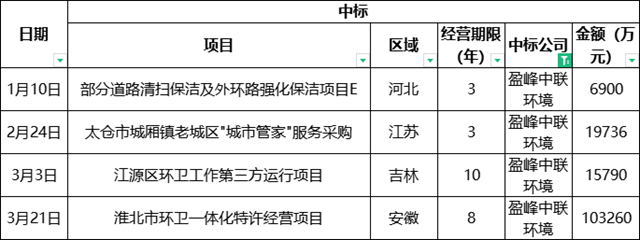 一季度盈峰中聯(lián)環(huán)境中標(biāo)的億級(jí)環(huán)衛(wèi)項(xiàng)目