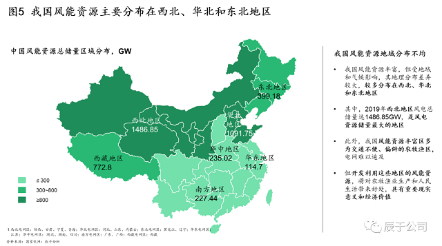 若只看陸上風電的分布,則難以確定哪里是主場,因為陸上風電的分布最大的特點就是供需嚴重錯配,電力需求小的地方風能蘊藏量大,電力需求大的地方風能蘊藏量小。
