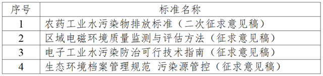 4項征求意見標準,涉及1項控制標準、1項水污染防治技術(shù)指南、1項管理規(guī)范和1項監(jiān)測評估方法,具體見下表。