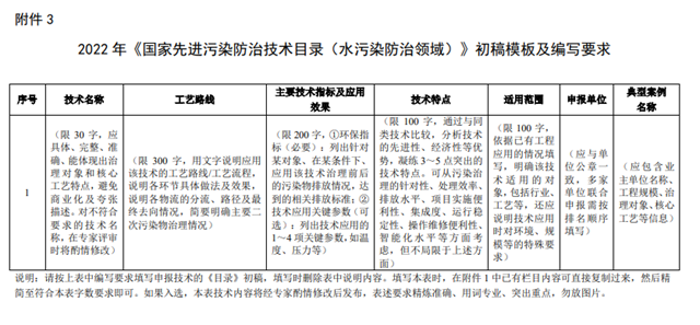 3.2022年《國家先進污染防治技術(shù)目錄(水污染防治領(lǐng)域)》初稿模板及編寫要求