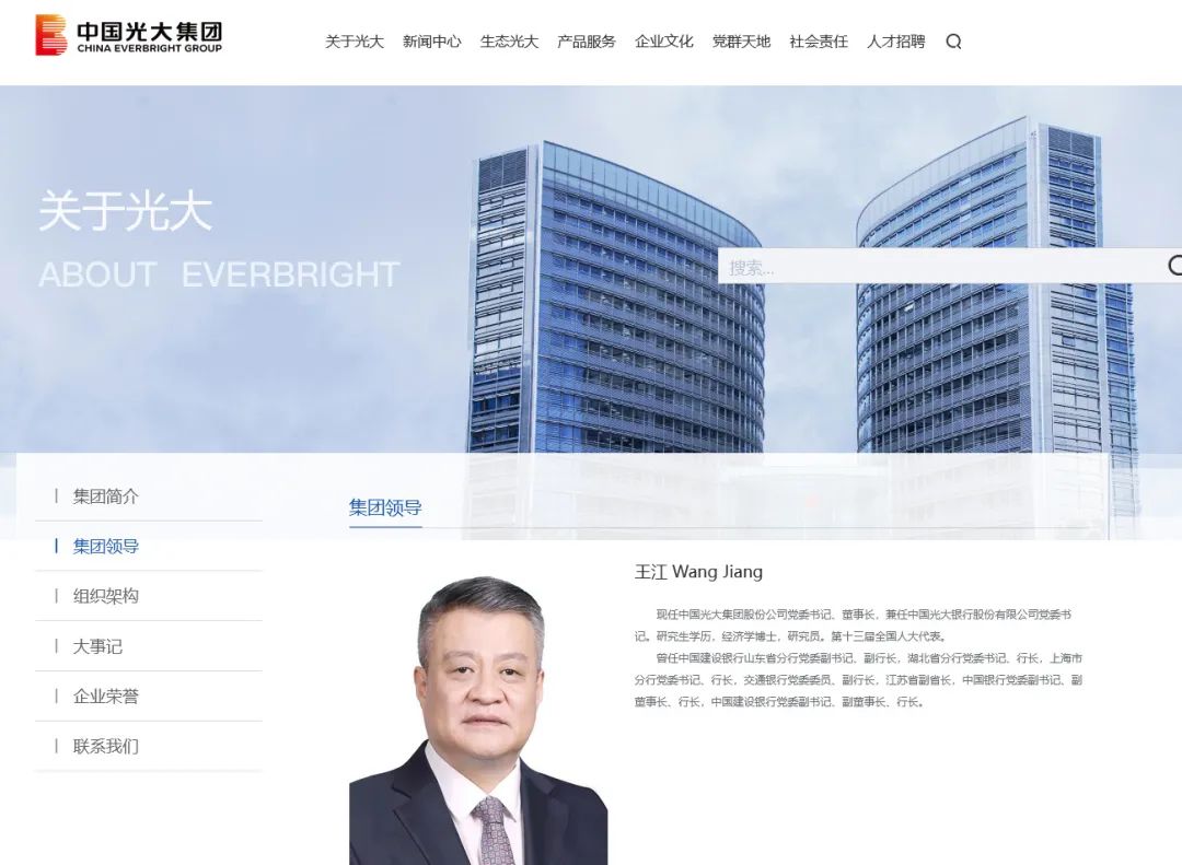 經(jīng)查詢,光大集團(tuán)官網(wǎng)集團(tuán)領(lǐng)導(dǎo)一欄已更新。如圖所示:
