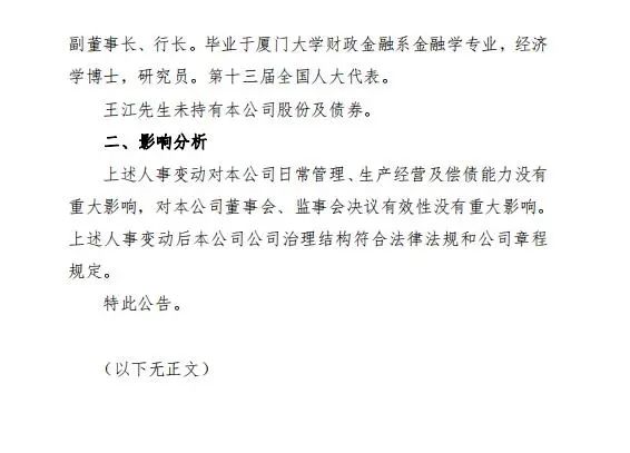 4月8日,集團(tuán)召開董事會2022年第二次會議決議通過,選舉王江先生為本公司董事長。