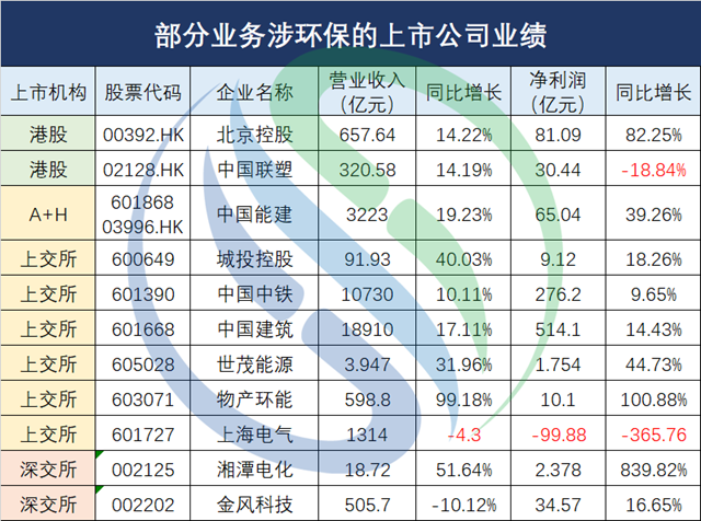 另附11家業(yè)務(wù)涉環(huán)保的上市公司業(yè)績