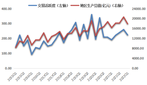 圖9 浙江省工業(yè)增加值與交易活躍度相關(guān)性分析