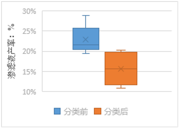 圖3 生活垃圾分類前后滲濾液產(chǎn)率分布對比圖