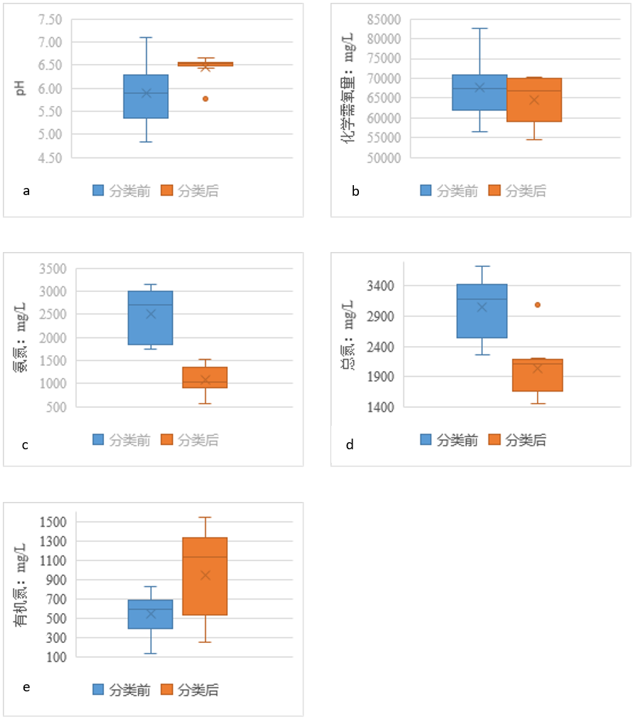 圖5 生活垃圾分類前后滲濾液主要水質(zhì)指標(biāo)分布對比