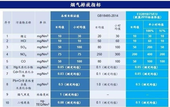 一是工藝流程嚴(yán)格化:為了實現(xiàn)煙氣的超低排放,項目在常規(guī)爐內(nèi)脫銷+半干法+活性炭噴射+布袋除塵基礎(chǔ)上,又增加了脫硝塔、濕法洗滌及煙氣再加熱系統(tǒng), 是目前國內(nèi)在運(yùn)行的最為嚴(yán)格的處理工藝,煙氣經(jīng)過脫硝、脫酸、除塵、去除二噁英和重金屬等有害物質(zhì)后通過煙囪排出,煙氣排放指標(biāo)的保證值嚴(yán)于歐盟2010排放標(biāo)準(zhǔn)的要求。以NOx為例,歐洲標(biāo)準(zhǔn)為200mg/Nm3,本項目實際排放值30-50 mg/Nm3之間;HCL排歐盟2010標(biāo)準(zhǔn)限值為10mg/Nm3,實際排放值在1-3mg/Nm3之間;民眾關(guān)心的二噁英排放問題也進(jìn)行了高標(biāo)準(zhǔn)要求:目前國內(nèi)最嚴(yán)格的排放標(biāo)準(zhǔn)為0.1ng TEQ/Nm3,而本項目可控制在0.05ng TEQ/Nm3以下。垃圾焚燒產(chǎn)生的爐渣經(jīng)除鐵后進(jìn)行資源化利用,產(chǎn)生的飛灰經(jīng)穩(wěn)定化處理后運(yùn)至填埋場進(jìn)行填埋,垃圾滲濾液由廠內(nèi)滲濾液處理站處理后回用,實現(xiàn)超低排放。