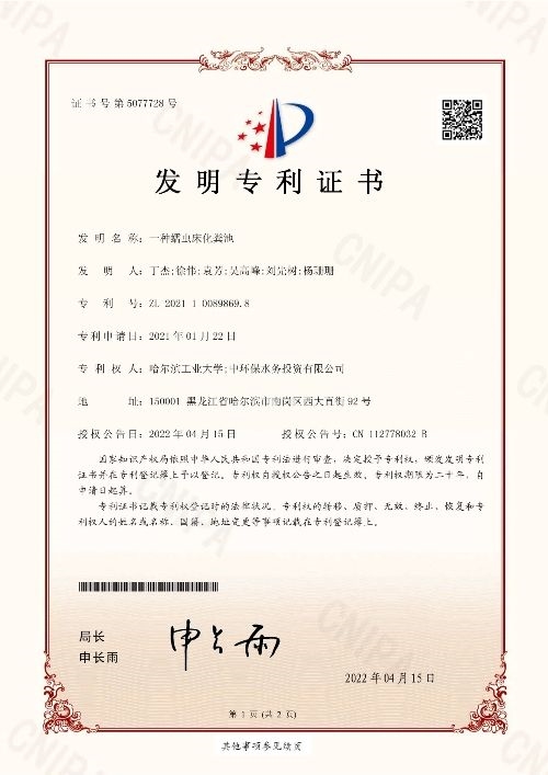 原標(biāo)題:中環(huán)水務(wù)獲得兩項(xiàng)國(guó)家發(fā)明專(zhuān)利