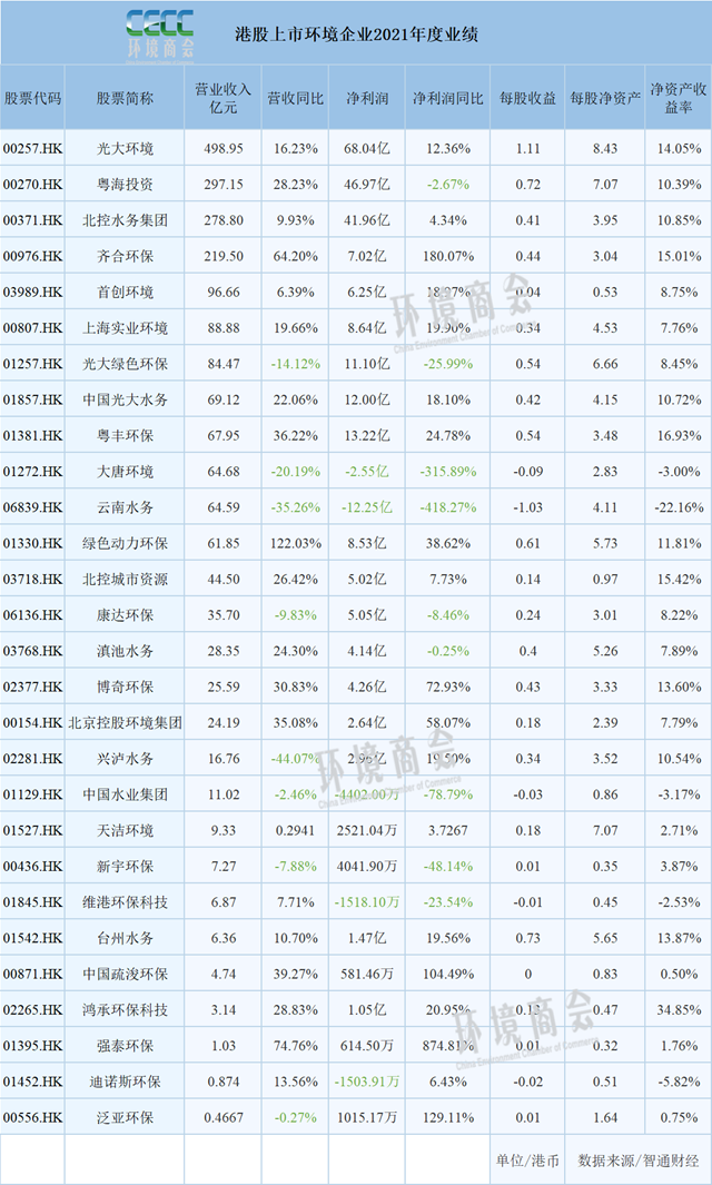 原標(biāo)題:176家環(huán)境企業(yè)2021年業(yè)績匯總