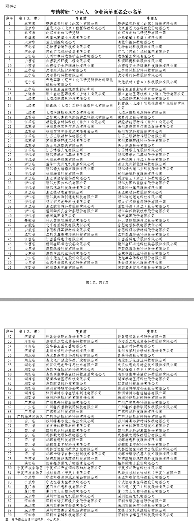 2.專精特新“小巨人”企業(yè)簡單更名公示名單