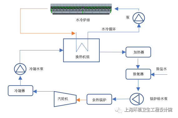水冷爐排系統(tǒng)熱量也可以進(jìn)入鍋爐循環(huán)水系統(tǒng)用于驅(qū)動(dòng)汽輪機(jī)組詳見附圖7,從而實(shí)現(xiàn)熱量循環(huán)利用。總體而言,水冷系統(tǒng)能夠帶走熱負(fù)荷2-3%,降低系統(tǒng)熱損失,增加焚燒廠發(fā)電量。