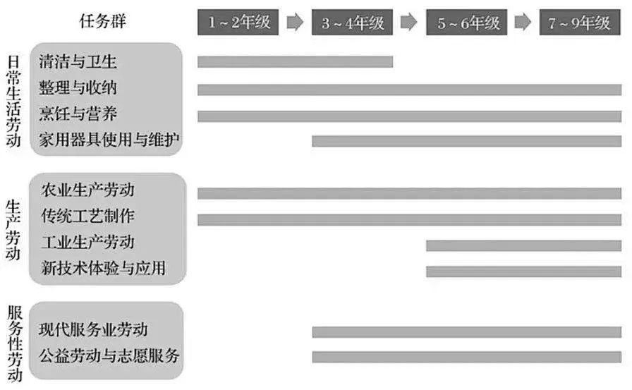 生產勞動:農業(yè)生產勞動、傳統(tǒng)工藝制作、工業(yè)生產勞動、新技術體驗與應用四個任務群。