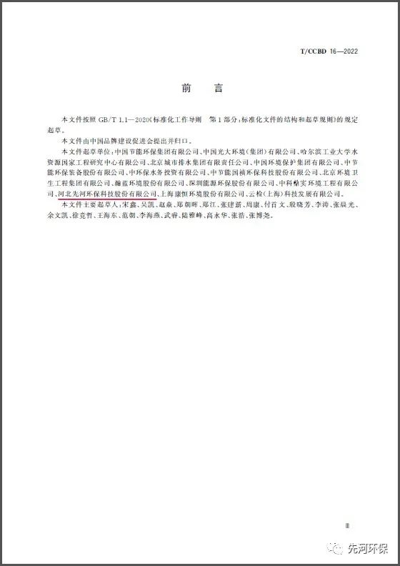 2022年5月1日,在中國(guó)品牌建設(shè)促進(jìn)會(huì)的指導(dǎo)下,由河北先河環(huán)保科技股份有限公司等15家企業(yè)共同參與并制定的《品牌價(jià)值評(píng)價(jià) 環(huán)境保護(hù)企業(yè)》團(tuán)體標(biāo)準(zhǔn)T/CCBD 16-2022于2022年5月1日正式發(fā)布實(shí)施。