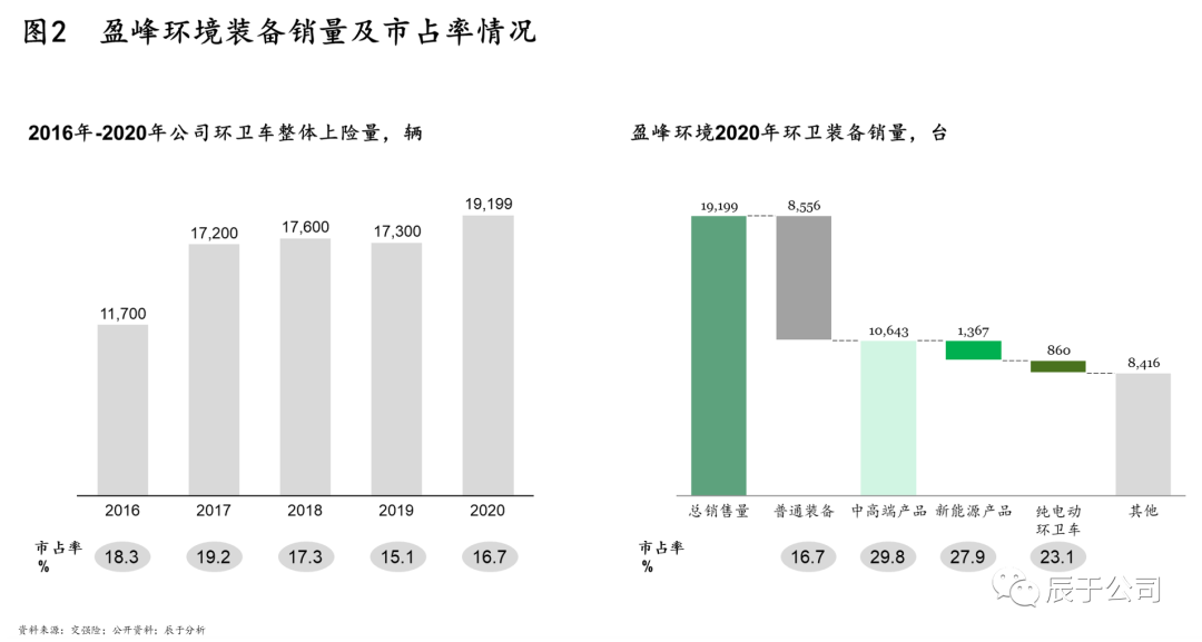 盈峰環(huán)境2015年轉(zhuǎn)型進(jìn)入環(huán)保市場(chǎng),用短短四年的時(shí)間就實(shí)現(xiàn)了營(yíng)收上百億的目標(biāo)。2021年收入達(dá)118億元,凈利潤(rùn)7.3億元,截至2021年末凈資產(chǎn)172.5億元(見(jiàn)圖1)。環(huán)衛(wèi)裝備和環(huán)衛(wèi)服務(wù)是盈峰環(huán)境的兩大業(yè)務(wù)板塊,2021年兩者占營(yíng)收總額近八成,兩者毛利潤(rùn)占總額的55%。其中,環(huán)衛(wèi)裝備自2016年起年銷(xiāo)量便達(dá)上萬(wàn)臺(tái),同時(shí)增速明顯,已連續(xù)21年處于國(guó)內(nèi)環(huán)衛(wèi)裝備行業(yè)銷(xiāo)售額第一名。在中高端環(huán)衛(wèi)裝備市場(chǎng)優(yōu)勢(shì)則更加明顯,有超過(guò)55%的環(huán)衛(wèi)裝備銷(xiāo)量由中高端產(chǎn)品貢獻(xiàn),智慧裝備、新能源裝備等市占率也穩(wěn)居國(guó)內(nèi)行業(yè)前列(見(jiàn)圖2)。截至2021年底,在手環(huán)衛(wèi)服務(wù)項(xiàng)目179個(gè),遍布全國(guó)26個(gè)省市,年?duì)I收30余億,較上年同期增長(zhǎng)54%,無(wú)論是存量市場(chǎng)還是增量市場(chǎng)均位居行業(yè)前三。國(guó)內(nèi)發(fā)展勢(shì)頭強(qiáng)勁的同時(shí),也在東南亞、非洲、歐洲等海外市場(chǎng)進(jìn)行了嘗試:2020年海外業(yè)務(wù)實(shí)現(xiàn)營(yíng)收5600萬(wàn)元,在歐洲,通過(guò)收購(gòu)意大利當(dāng)?shù)仄髽I(yè)切入市場(chǎng),2020年初斬獲羅馬環(huán)衛(wèi)超1億元訂單,并向意周邊國(guó)家拓展;在東南亞與非洲,借助國(guó)家“一帶一路”政策,目前已在印尼、柬埔寨、老撾、加納等國(guó)家中標(biāo)項(xiàng)目。本文試圖抽絲剝繭,剖析盈峰環(huán)境的發(fā)展歷程,總結(jié)其不走尋常路、異軍突起中國(guó)環(huán)衛(wèi)市場(chǎng)的成功因素,為各類企業(yè)、尤其是環(huán)衛(wèi)相關(guān)企業(yè)轉(zhuǎn)型發(fā)展提供啟迪和思考。盈峰環(huán)境異軍突起的四大關(guān)鍵