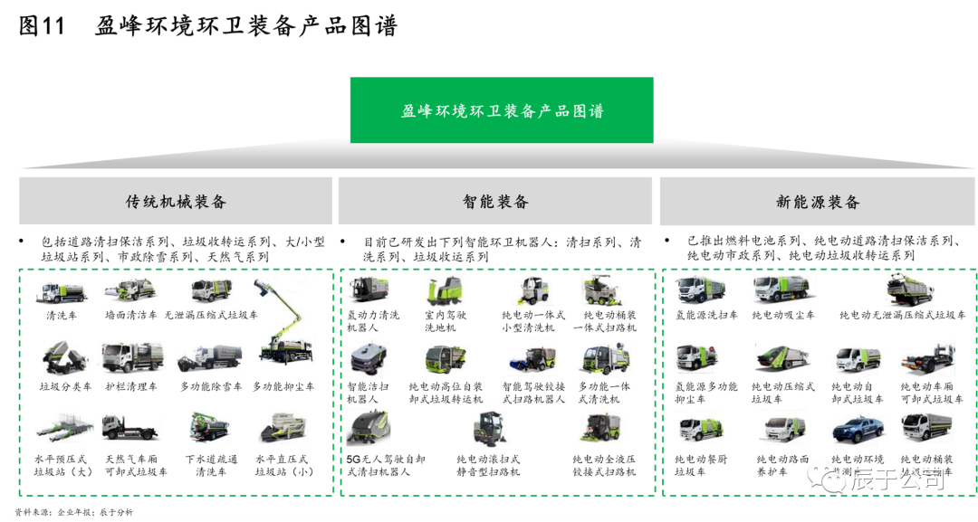 以此為基,盈峰環(huán)境進(jìn)一步聚焦機(jī)械化、智慧化、新能源化三大方向,構(gòu)建了完整的環(huán)衛(wèi)裝備圖譜,涵蓋傳統(tǒng)機(jī)械裝備、智能裝備以及新能源裝備等三大領(lǐng)域(見(jiàn)圖11)。