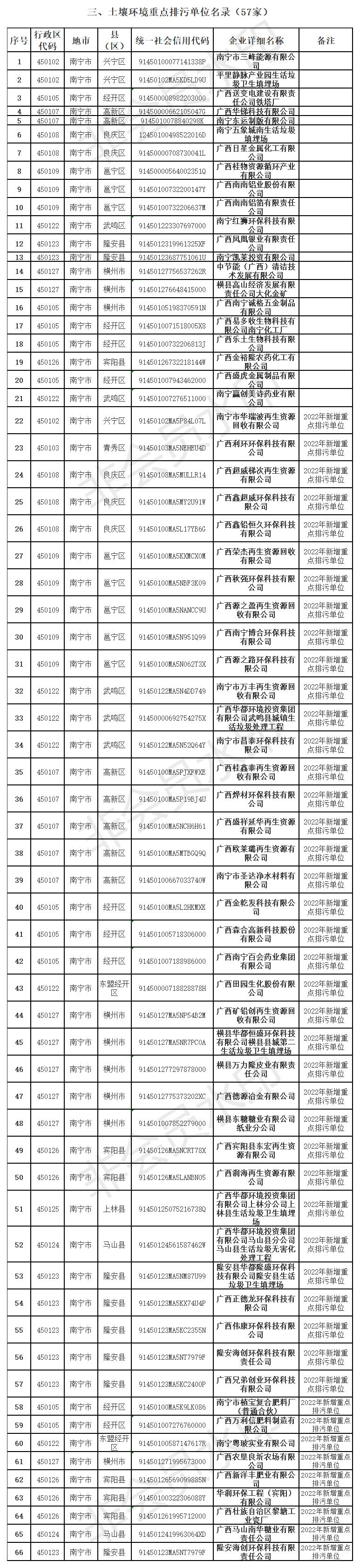 附件:2022年南寧市重點排污單位名錄