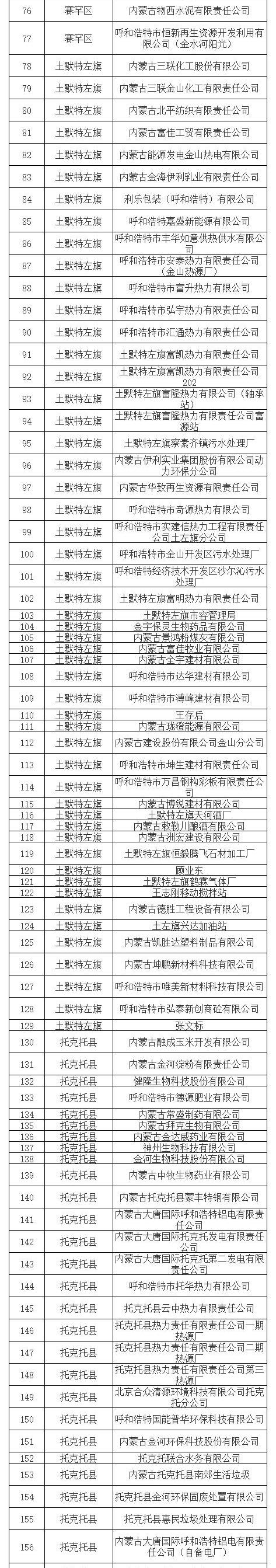 呼和浩特市2021年度環(huán)境信用評(píng)價(jià)企業(yè)名單