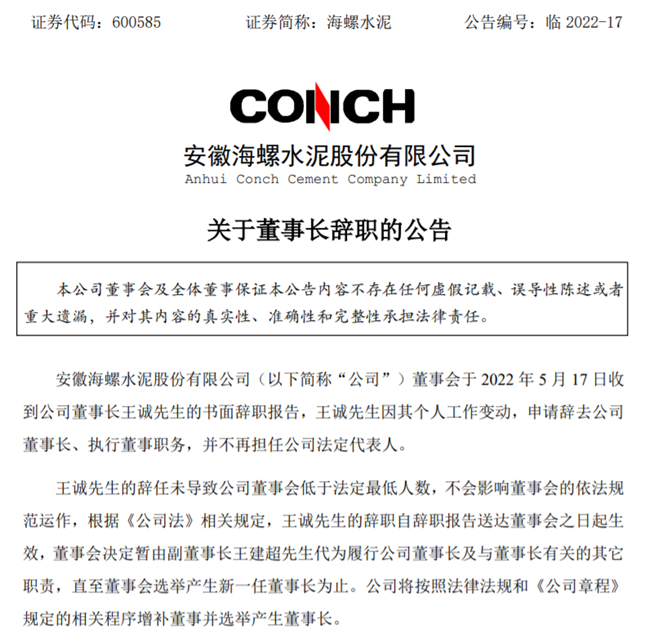 公開資料顯示,王誠出生于1965年3月,安徽淮南人,在擔(dān)任安徽省人民政府副秘書長之前,歷任淮南市副市長、市委常委、常務(wù)副市長,蚌埠市委副書記、蚌埠市市長,安徽海螺集團(tuán)黨委書記、董事長等職。2013年,王誠調(diào)任蚌埠市委副書記,2016年12月任蚌埠市代市長,2017年2月任蚌埠市市長;2021年4月,王誠任安徽海螺集團(tuán)有限責(zé)任公司黨委書記、董事長,任期為2021年5月28日-2022年5月29日。2022年5月17日,安徽海螺水泥股份有限公司(簡稱:海螺水泥)發(fā)布公告稱,其董事長王誠因個人工作變動原因,辭去公司董事長、執(zhí)行董事職務(wù),并不再擔(dān)任法定代表人。董事會決定暫由王建超代為履行公司董事長及與董事長有關(guān)的其它職責(zé),直至董事會選舉產(chǎn)生新一任董事長為止。海螺集團(tuán)作為全世界最大的建材企業(yè)集團(tuán)之一,王誠在任期即將結(jié)束前匆匆離職,便已引起外界猜測, 6月13日安徽紀(jì)檢監(jiān)察網(wǎng)公布的“王誠涉嫌嚴(yán)重違紀(jì)違法”一事,更是引起了熱議。據(jù)企查查獲悉,安徽省國資委通過安徽省投資集團(tuán)控股有限公司持有海螺集團(tuán)51%股權(quán),為控股股東,港股上市公司中國海創(chuàng)控股(香港)有限公司通過蕪湖海創(chuàng)實業(yè)有限責(zé)任公司持有海螺集團(tuán)49%股權(quán),為參股股東。在上市公司層面,王誠任職期間,海螺水泥作為海螺集團(tuán)旗下控股子公司,收購了關(guān)聯(lián)企業(yè)海螺新能源,加快對光伏儲能項目的投資,又在資本市場頻頻捧場同行定增,甚至直接增持和舉牌,一改此前低調(diào)的行事風(fēng)格。不僅如此,海螺集團(tuán)旗下港股公司海螺創(chuàng)業(yè)備受資本市場關(guān)注。3月30日,海螺創(chuàng)業(yè)分拆海螺環(huán)保在港交所主板上市。5月6日,海螺創(chuàng)業(yè)對外宣布正在考慮分拆旗下安徽海創(chuàng)綠能環(huán)保集團(tuán)股份有限公司在上交所主板獨立上市。如若成行,屆時海螺集團(tuán)將擁有5家上市平臺。傳統(tǒng)行業(yè)遇發(fā)展瓶頸,加速布局環(huán)保、新能源領(lǐng)域盡管近年來大動作不斷,但海螺集團(tuán)仍遭遇了發(fā)展瓶頸,業(yè)績增長基本停滯。高能耗、高排放行業(yè)在“碳達(dá)峰、碳中和”的雙碳背景下,面臨極大的轉(zhuǎn)型壓力。