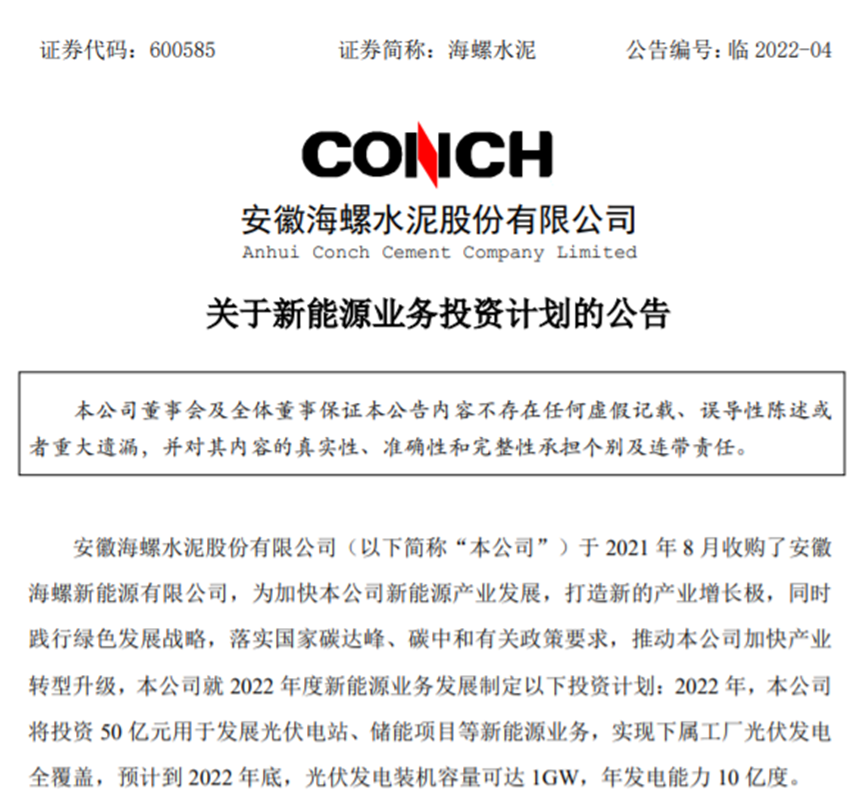 2022年3月9日,海螺水泥發(fā)布公告稱,2022年將投資50億元用于發(fā)展光伏電站、儲能等新能源業(yè)務(wù),實現(xiàn)下屬工廠光伏發(fā)電全覆蓋,預(yù)計至2022年底,光伏發(fā)電裝機(jī)容量可達(dá)1GW,年發(fā)電能力10億度。在環(huán)保領(lǐng)域,6月3日,海螺水泥發(fā)布公告稱,為加強(qiáng)資源整合及產(chǎn)業(yè)融合,海螺水泥擬對海螺環(huán)保進(jìn)行控股收購,以鞏固海螺水泥作為海螺環(huán)保第一大股東的基礎(chǔ),并最終通過委任海螺環(huán)保董事會大部分董事,實現(xiàn)對海螺環(huán)保的控制和并表。 截至公告日,海螺水泥直接持有及通過境外海螺香港間接持有股份占海螺環(huán)??偣杀颈壤秊?3.83%,為第一大股東。自海螺環(huán)保上市破發(fā)后,海螺水泥便頻頻出手進(jìn)行多筆增持,持股比例不斷上升。海螺環(huán)保近年來的業(yè)績整體來看也非常可觀。2019年至2021年,海螺環(huán)保的營業(yè)收入分別為7.38億元、11.44億元、16.98億元,同比增長分別為85.6%、55.06%、48.44%;歸屬凈利潤分別3.53億元、4.69億元、5.79億元,同比增長分別為51.28%、32.74%、23.37%。海螺環(huán)保作為安徽省環(huán)保領(lǐng)域龍頭企業(yè),海螺水泥收購海螺環(huán)保不僅有利于將傳統(tǒng)水泥窯與廢棄物處置相結(jié)合,推動循環(huán)經(jīng)濟(jì)發(fā)展的綠色轉(zhuǎn)型,而且有助于布局水泥主業(yè)相關(guān)的新興產(chǎn)業(yè),打造新的產(chǎn)業(yè)增長極和利潤增長點,具有重要的戰(zhàn)略意義。在王誠辭去海螺水泥董事長、執(zhí)行董事職務(wù)后,6月1日,海螺水泥發(fā)布公告稱,根據(jù)公司經(jīng)營管理需要,董事會一致推選王建超先生代為履行公司第九屆董事會董事長及與董事長相關(guān)的其它職責(zé),直至董事會選舉產(chǎn)生新一任董事長為止。此外,據(jù)海螺集團(tuán)官網(wǎng)顯示,5月19日,海螺集團(tuán)五屆一次董事會上,選舉楊軍擔(dān)任海螺集團(tuán)董事長一職。據(jù)了解,王誠的繼任者楊軍是此前有色控股的掌舵人,1969年12月出生,正高級經(jīng)濟(jì)師。從履歷來看,2010年7月至2012年9月楊軍任銅陵有色總經(jīng)理,2012年9月至2014年7月任有色控股黨委副書記、董事、總經(jīng)理,以及旗下上市公司銅陵有色的黨委書記;2014年7月至2014年8月任有色控股黨委書記、總經(jīng)理、董事、銅陵有色黨委書記;2014年8月至2015年3月任有色控股董事長、黨委書記、總經(jīng)理;2015年3月至本次任命之前擔(dān)任有色控股董事長、黨委書記,2014年8月至本次任命之前擔(dān)任銅陵有色董事長。資料顯示,有色控股和海螺集團(tuán)是安徽省僅有的入選世界500強(qiáng)的兩家本土企業(yè)。其中,有色控股是安徽省首家銷售收入突破千億元大關(guān)的企業(yè),上市公司銅陵有色是中國銅工業(yè)板塊第一股。2021年,銅陵有色和海螺水泥分別實現(xiàn)營收1310.34億元和1679.53億元,在安徽省屬企業(yè)中的地位舉足輕重。新任掌舵人將帶領(lǐng)海螺集團(tuán)走出怎樣的發(fā)展之路呢?新能源、環(huán)保等布局將怎樣推進(jìn)?也是行業(yè)目前很關(guān)注的話題。