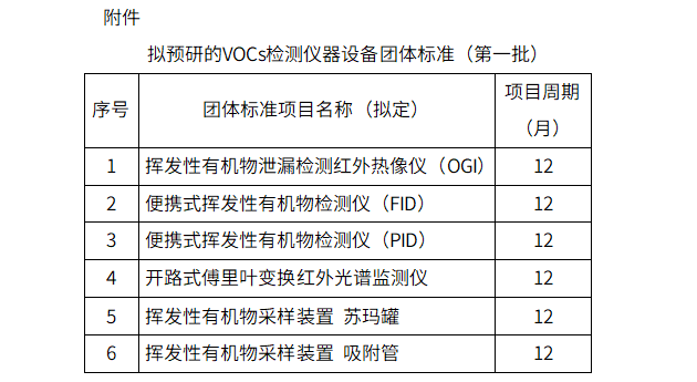 附件:擬預(yù)研的VOCs檢測(cè)儀器設(shè)備團(tuán)體標(biāo)準(zhǔn)(第一批)