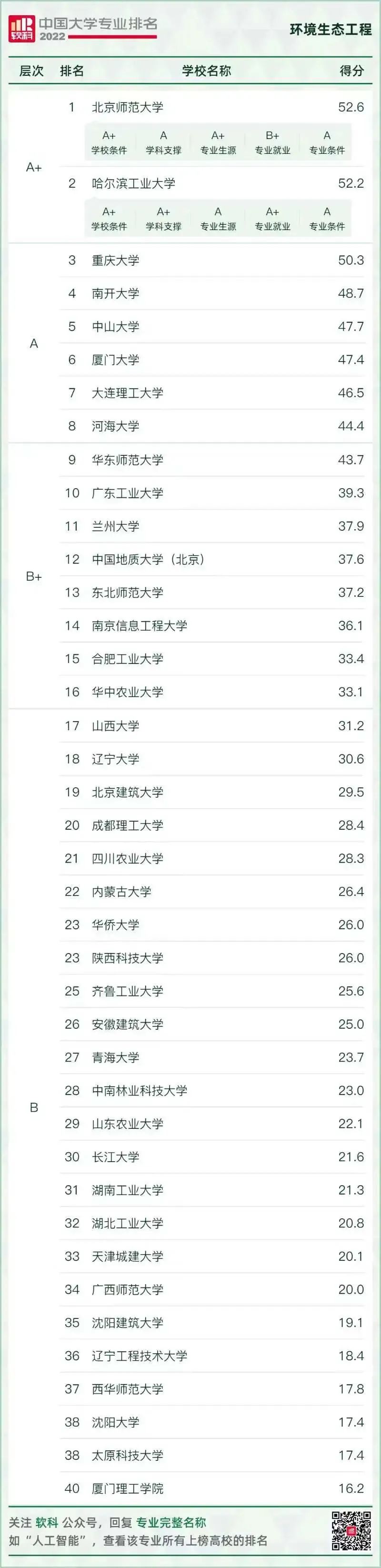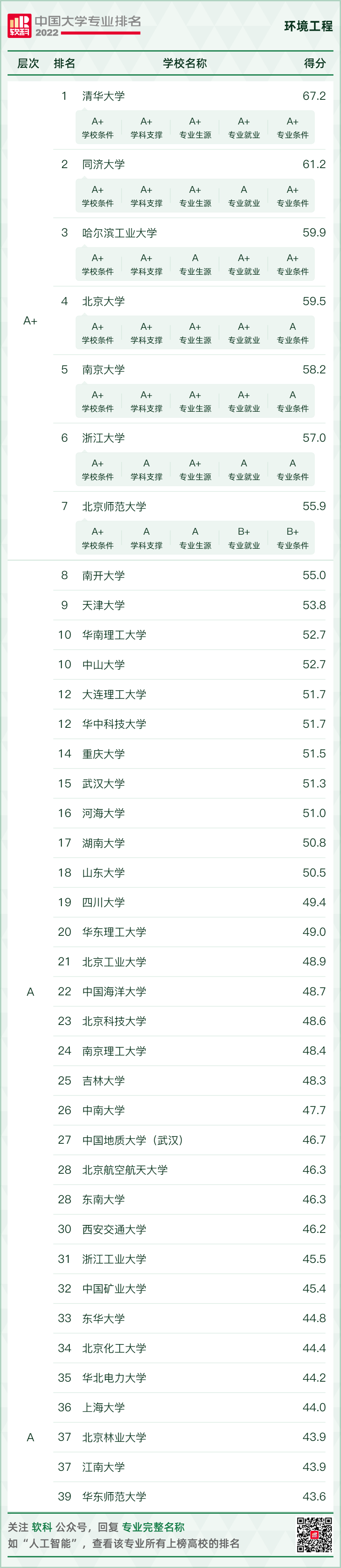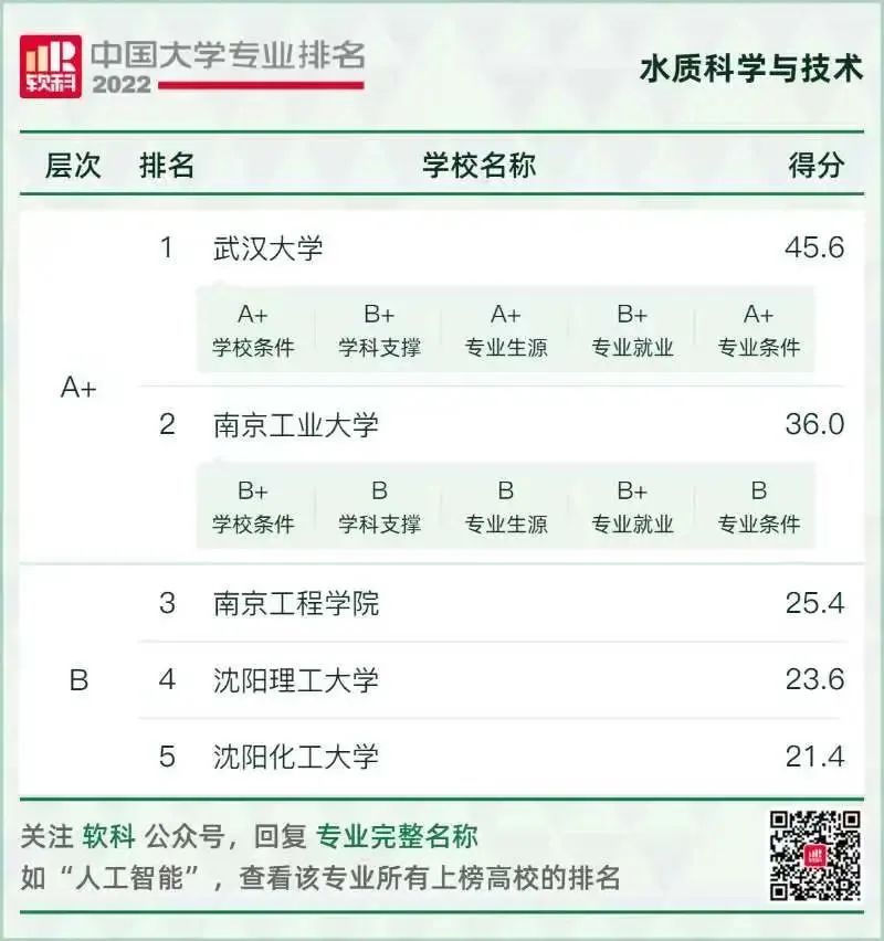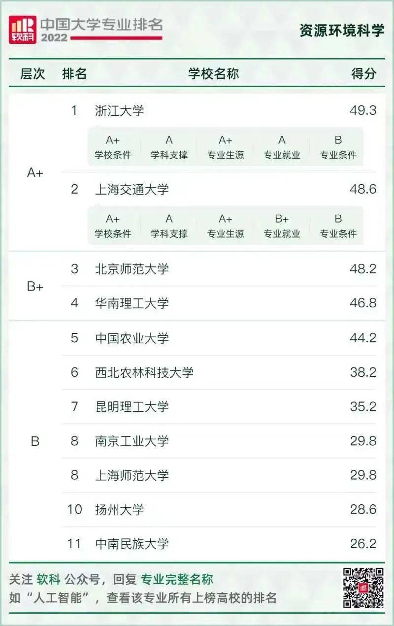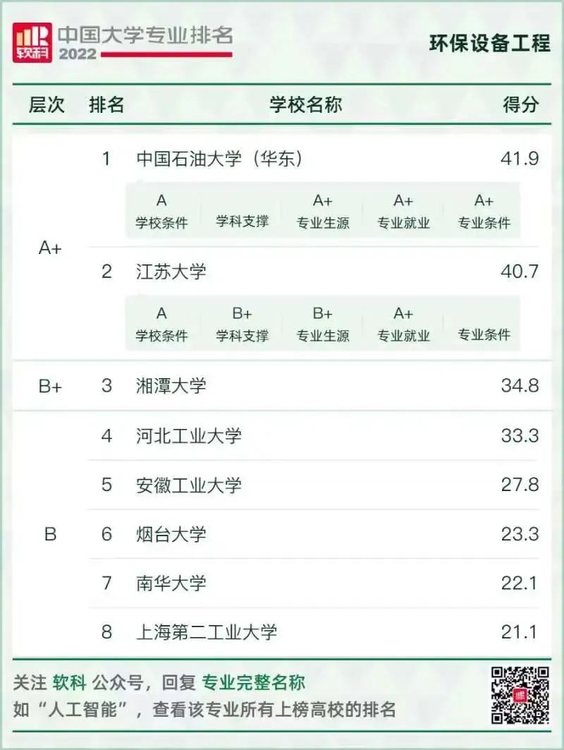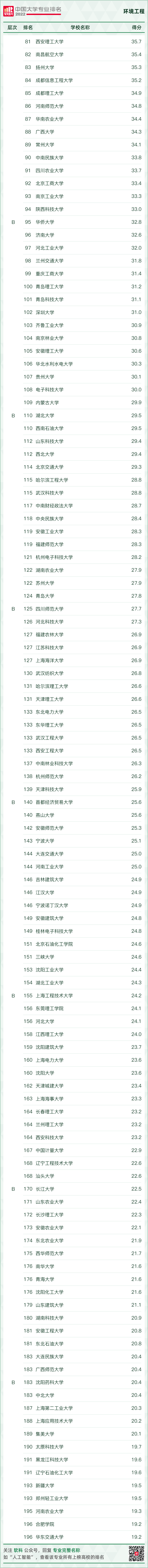 環(huán)境科學(xué)與工程類專業(yè)排名情況如下: